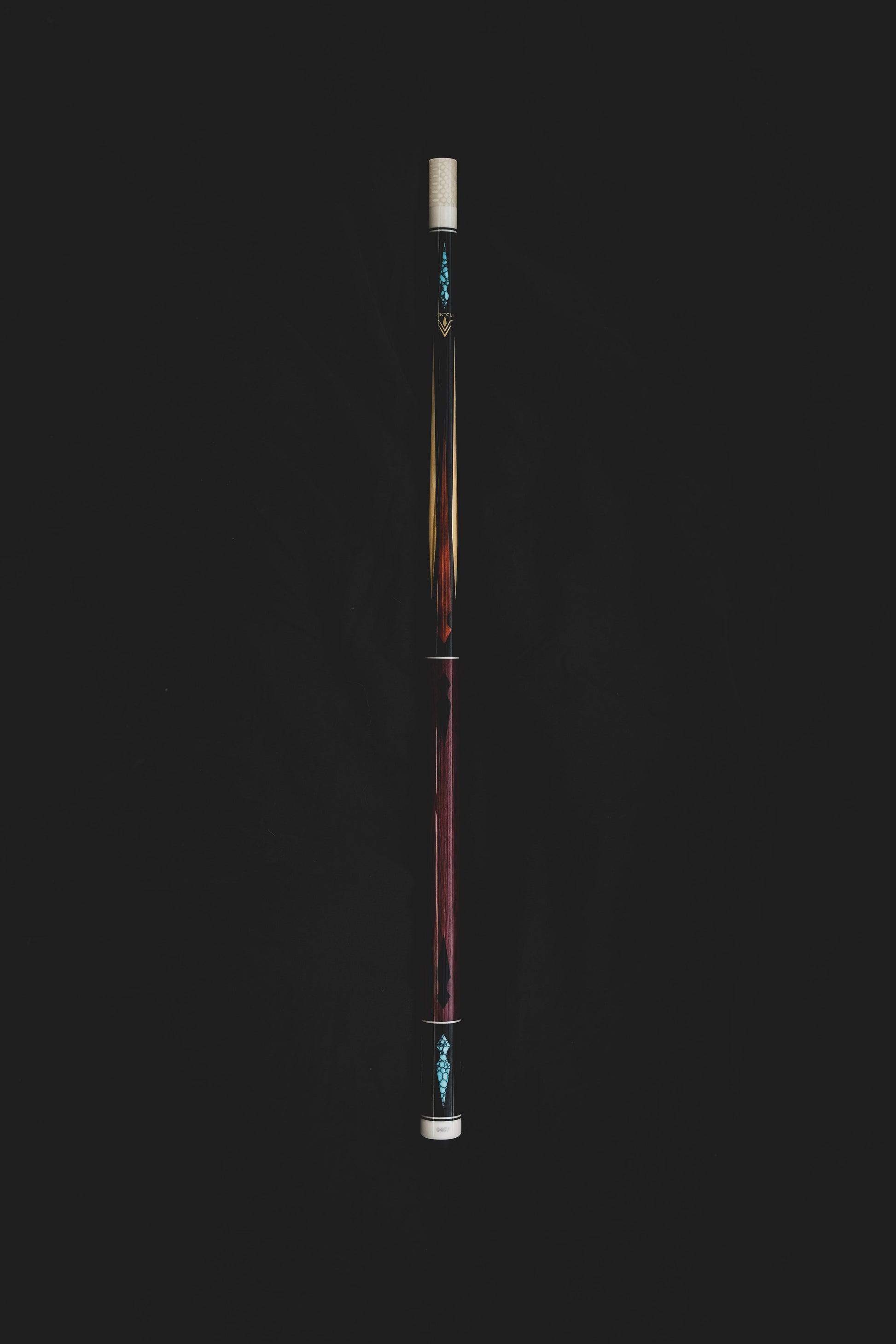 Rigorously selected Gabonese ebony structure in the first and third thirds. Purple Heart also carefully selected in the second. In the separation of each tier, there are small rings of resin in conjunction with the tips.