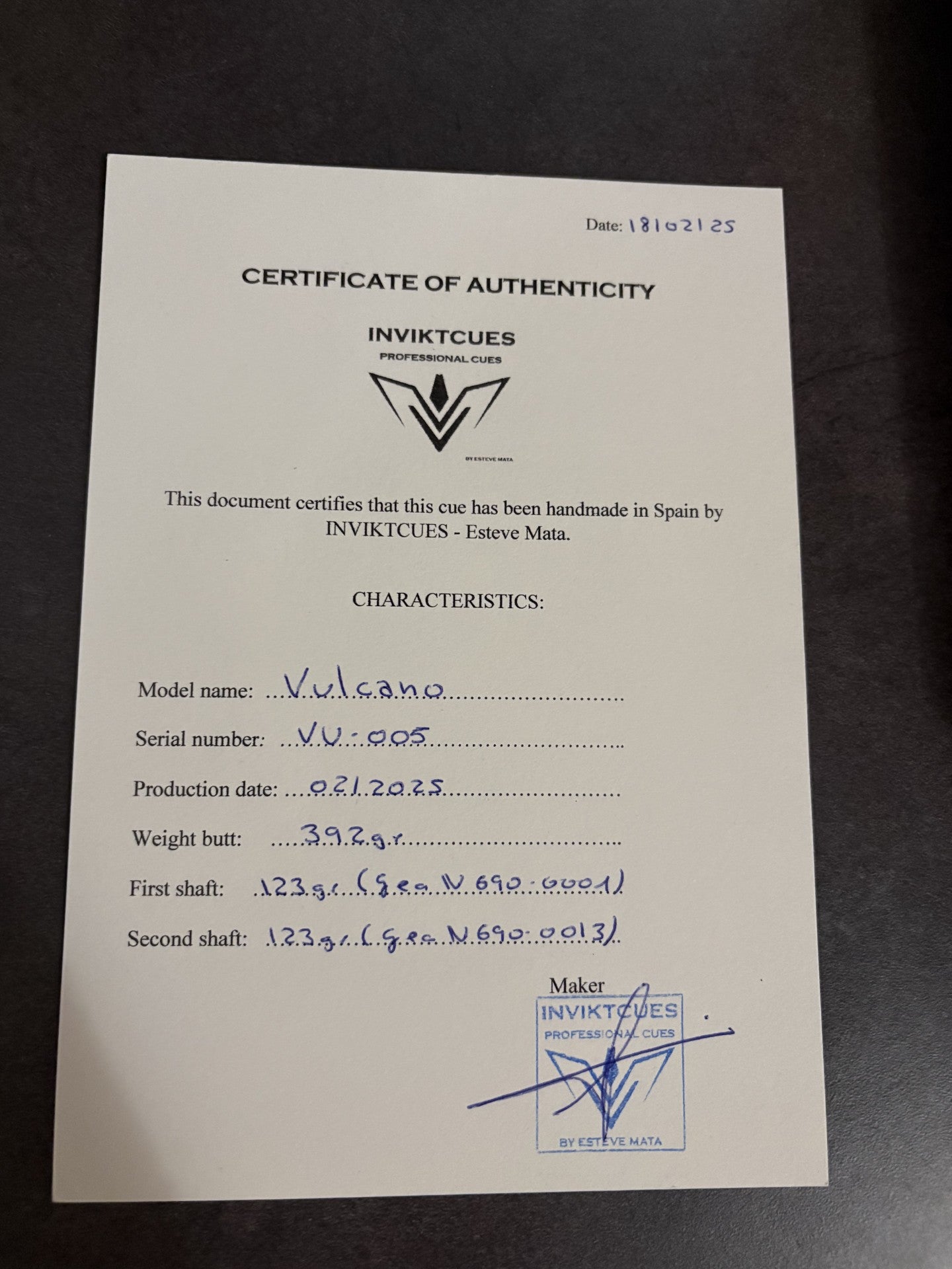 Magnificent carom cue from the INVIKTCUES brand sold with two laminated wood arrows ("GEA Laminated Natural"), a 30cm wooden extension and a storage case for a butt and two shatfs.